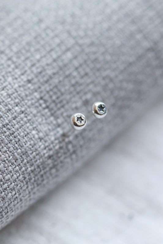Tiny Star Studs / Christmas Earrings / Recycled Sterling Silver Dot Earrings with a Star Impression / Cute Studs for second piercing