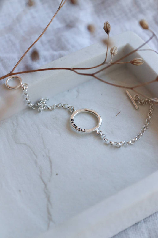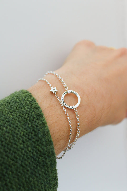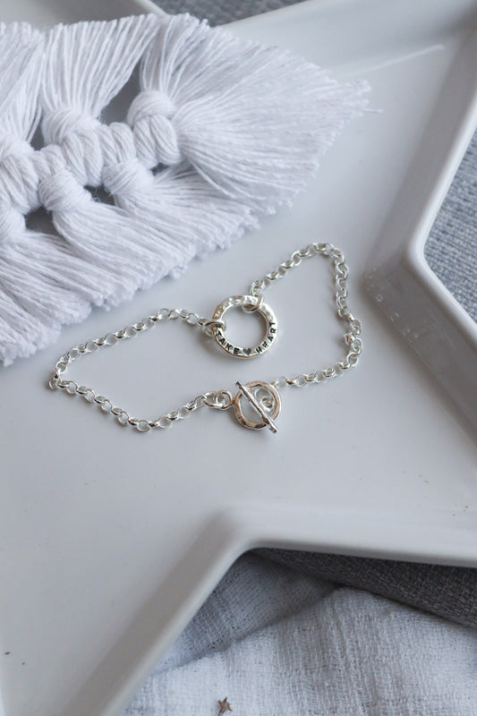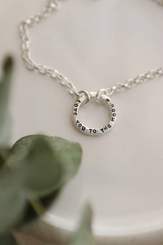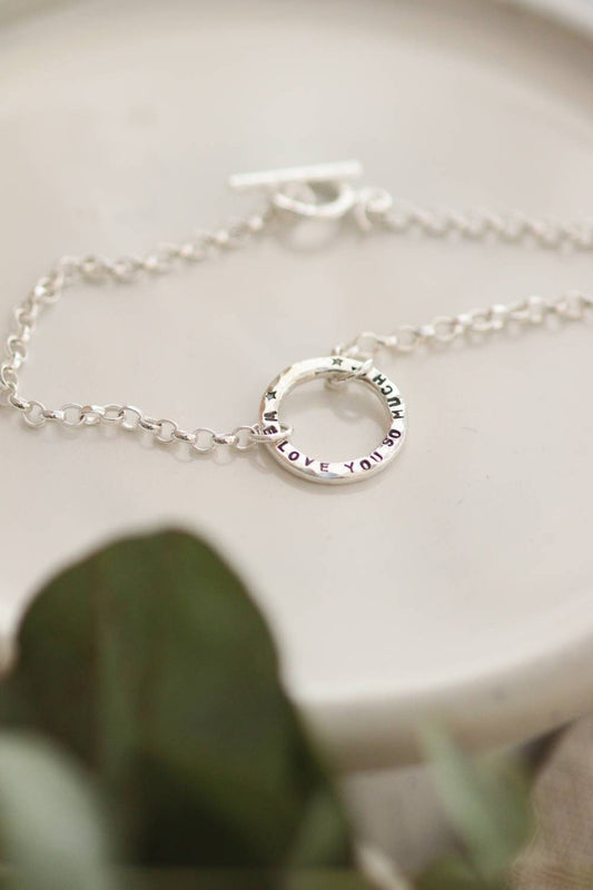 We love you so much /Silver circle chain bracelet / Hand Stamped with a phrase, names, dates