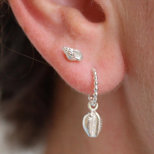 Recycled Silver Sea Urchin Earrings - Huggie Hoops