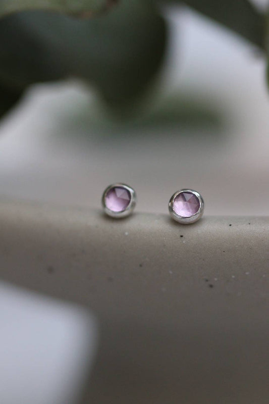 Rosecut Amethyst Silver Stud Earrings _ February Birthstone