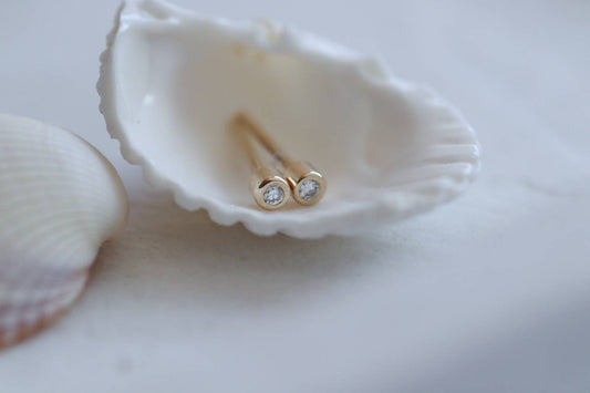 Tiny 9ct Gold and Natural Ocean Diamond Stud Earrings / Second Piercing / Ethically Sourced Diamonds