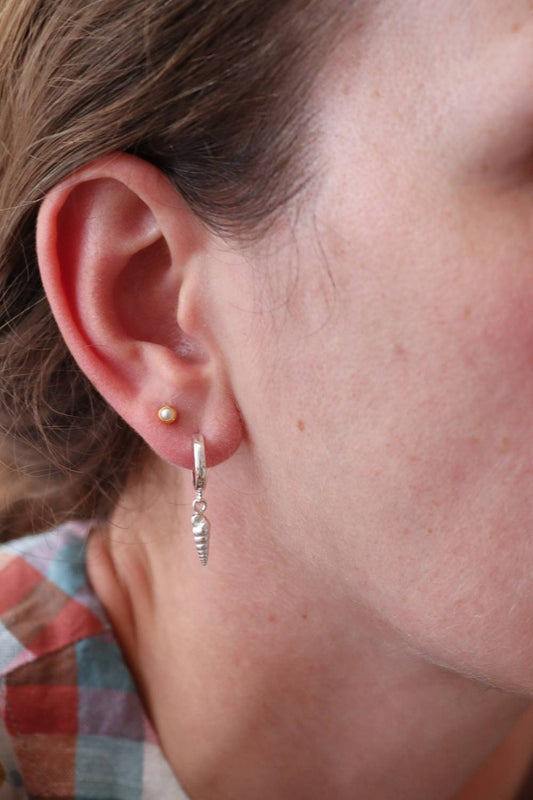 Solid Silver Seashell Huggie Hoops / Showstoppers / Dangly Huggies / Shell Earrings